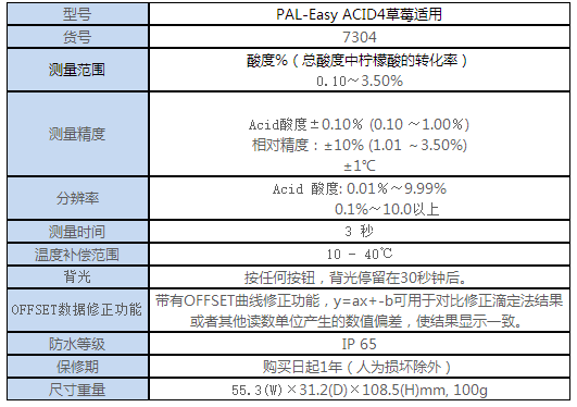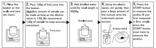 第五步. 按下START键,Acid酸度测量值将显示出来。(如果你第一次测量糖度值可以简单地按下START按钮,再次测量酸度值)