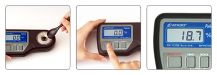 滴2-3滴样品至棱镜表面→按键START / OFF开关→测量数值在3次闪烁后,得出显示数值是Brix(浓度)。